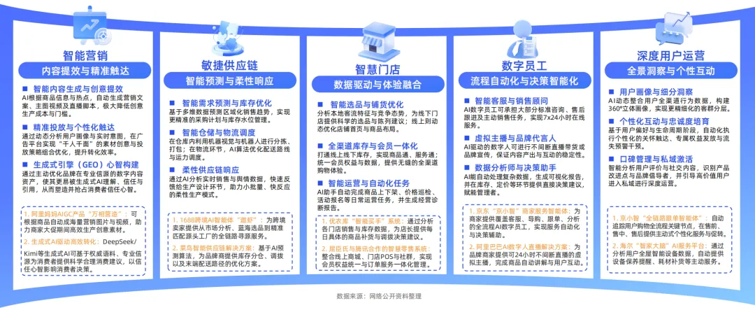 AI工具的深度融入,不止于优化消费者体验,更在经营端实现了角色跃迁——从辅助工具演进为驱动增长的核心引擎。其价值已深度贯穿于智能营销的效率革命、供应链的敏捷响应、门店的全渠道协同、劳动力的自动化替代,乃至用户全生命周期的价值深耕。这标志着行业竞争范式正从资源与规模优势,转向以数据智能与算法驱动的全链路精细化运营能力。对企业而言,积极拥抱并系统化部署AI,已不仅是降本增效的选项,更是构建未来核心竞争力的战略必需。