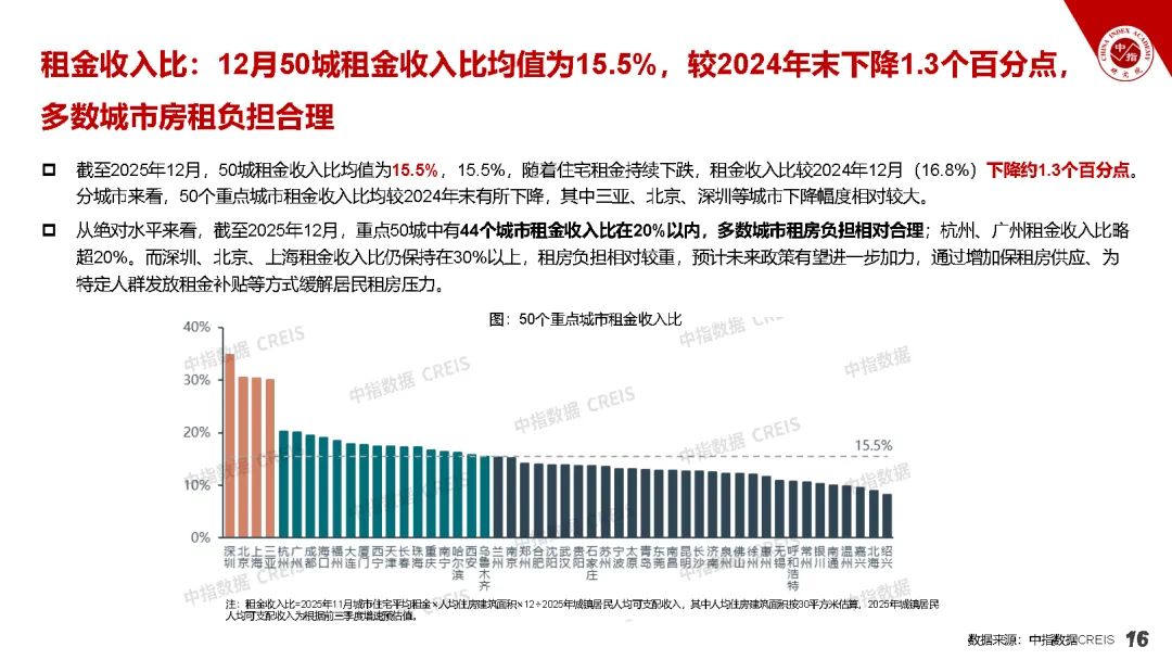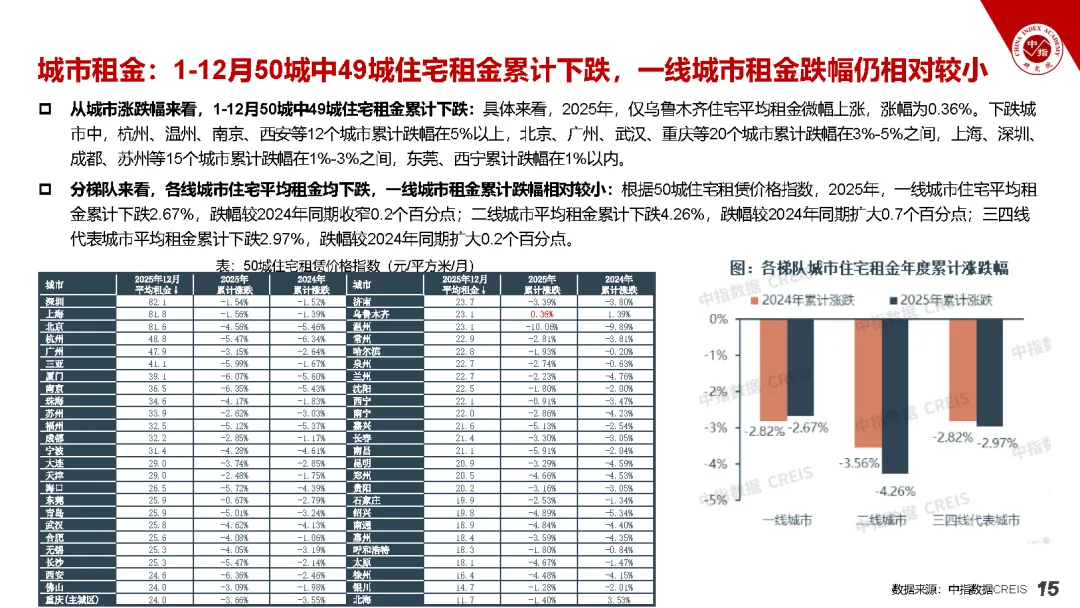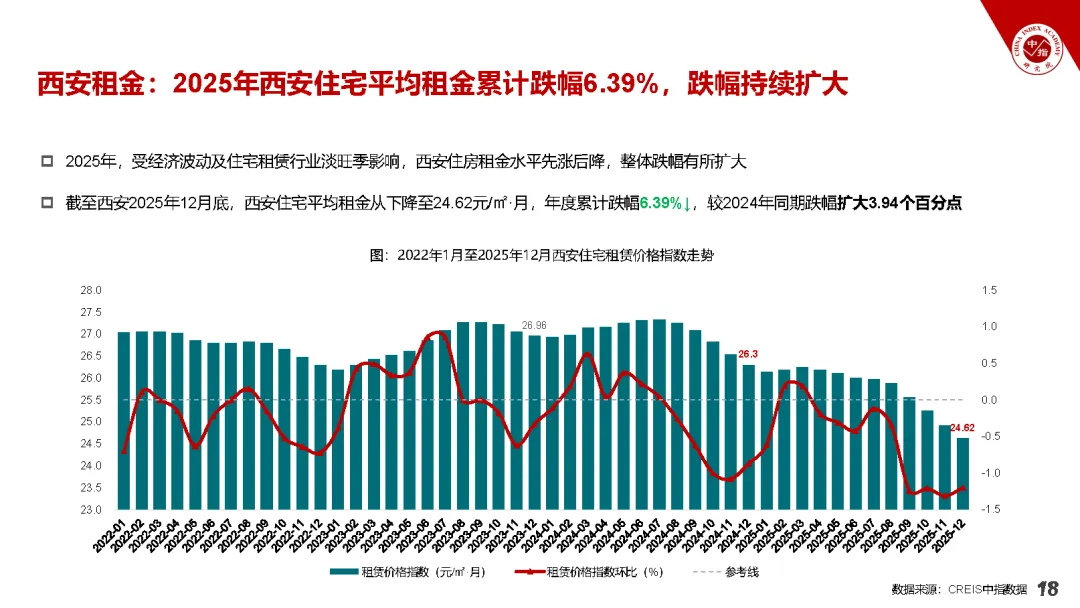 市场租金整体承压下行、城市分化显著,租购关系更趋合理,西安市场跌幅扩大且区县普跌