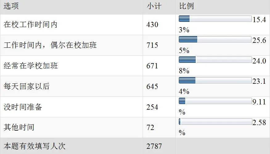 可见,偶尔加班、经常加班、在校加班、回家加班……似乎只有“加班”才是保证教师完成正常教学工作的唯一法宝。是什么原因使得教师们一再加班,在正常的工作时间内完不成基本准备任务呢?
