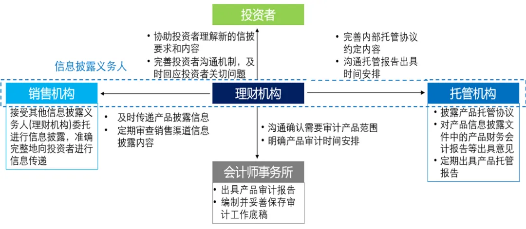 此外,理财机构需要和销售机构、托管机构及会计师事务所进行必要的沟通,全面落实《办法》的各项新要求,并持续深化投资者教育工作。