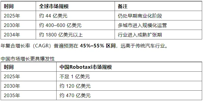 Robotaxi 被认为是未来十年增长最快的出行细分市场之一。