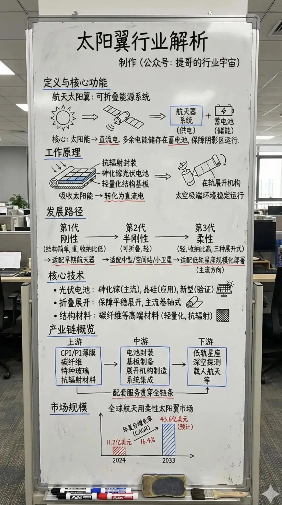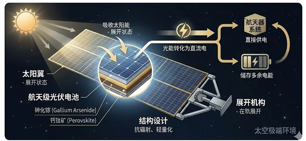 太阳翼的核心技术体系围绕“能量收集-转换-传输-支撑”四大环节展开。