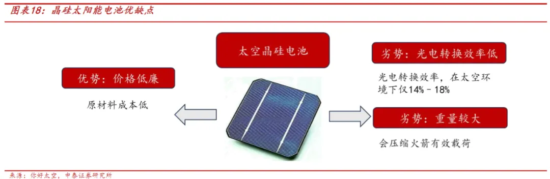 HJT电池、钙钛矿电池等新型光伏技术目前正处于太空环境验证阶段,这类技术兼具效率提升潜力与成本优化空间,若完成验证并实现工程化应用,有望实现太阳翼电池效率与成本的双重突破。