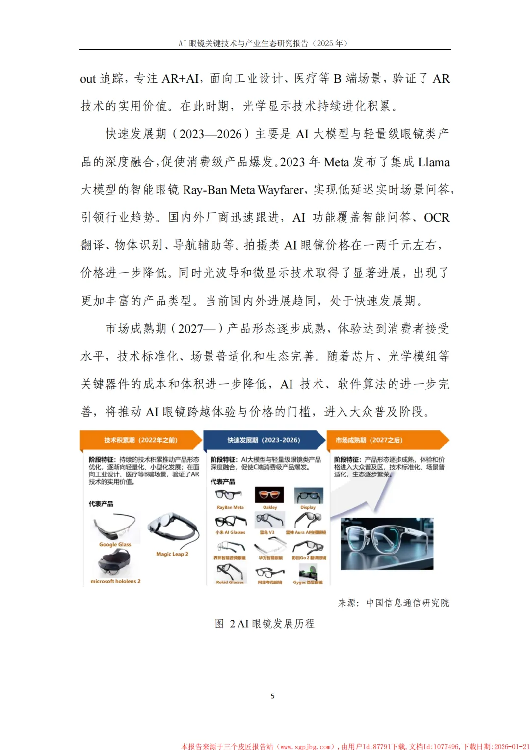 1. 产业处于快速发展关键期:AI大模型与轻量级眼镜产品的深度融合,驱动消费级产品加速落地,全球范围内多品牌新品密集涌现,典型产品市场表现亮眼,推动市场规模快速扩张。核心技术的持续迭代优化,显著提升了用户体验;同时,我国已形成涵盖光学、声学、整机制造等关键环节的庞大创新梯队,产业生态活力充沛,为行业发展注入强劲动力。