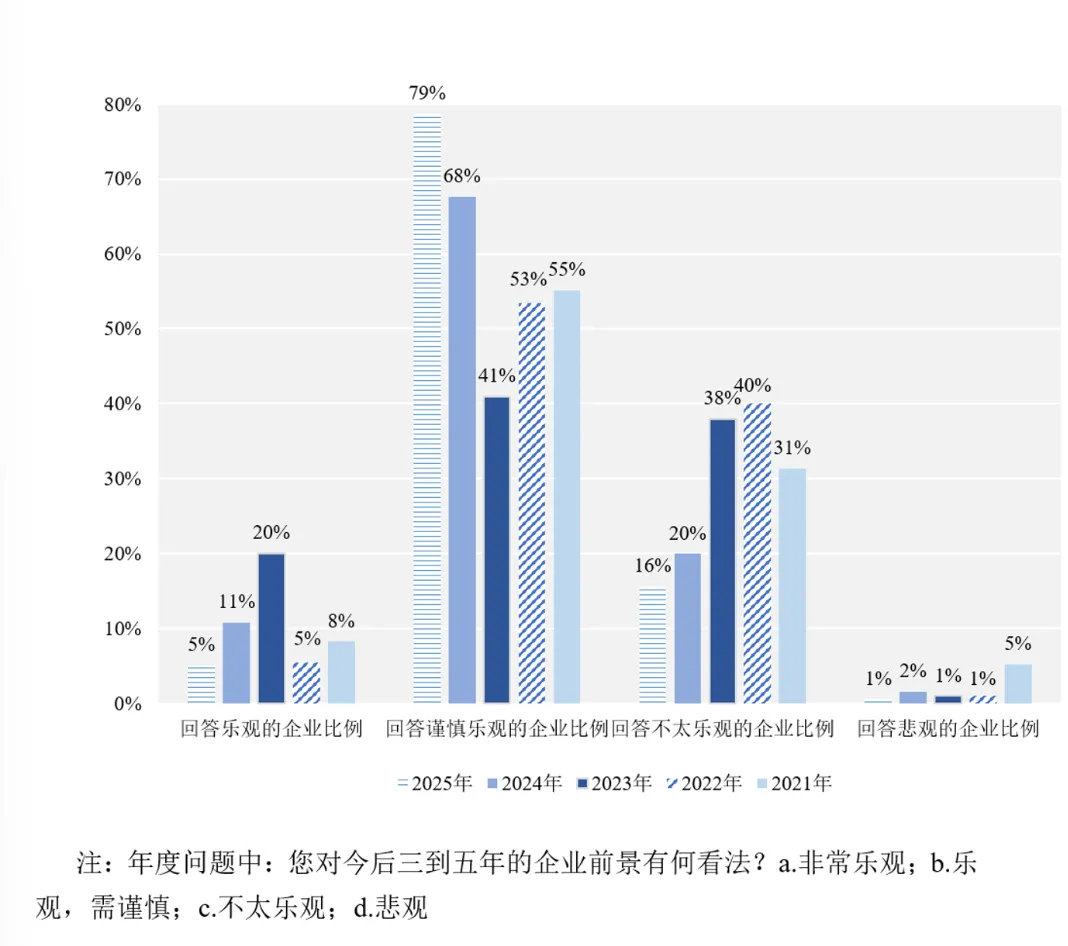 例如去年四季度,56.7%的企业家看好宏观GDP的增长,却看淡微观经营。这种反差说明,中国的企业家群体并非盲目的乐天派。他们拥有极其敏锐的“风险嗅觉”,在做预算和战略规划时,习惯于把困难想得更足,把竞争想得更惨烈。这种“计算过的悲观”,本质上是对不确定性的敬畏,是每一位掌舵者必须具备的风险定价能力。他们不是在抱怨环境,而是在极限施压的假设下寻找生存的最优解。