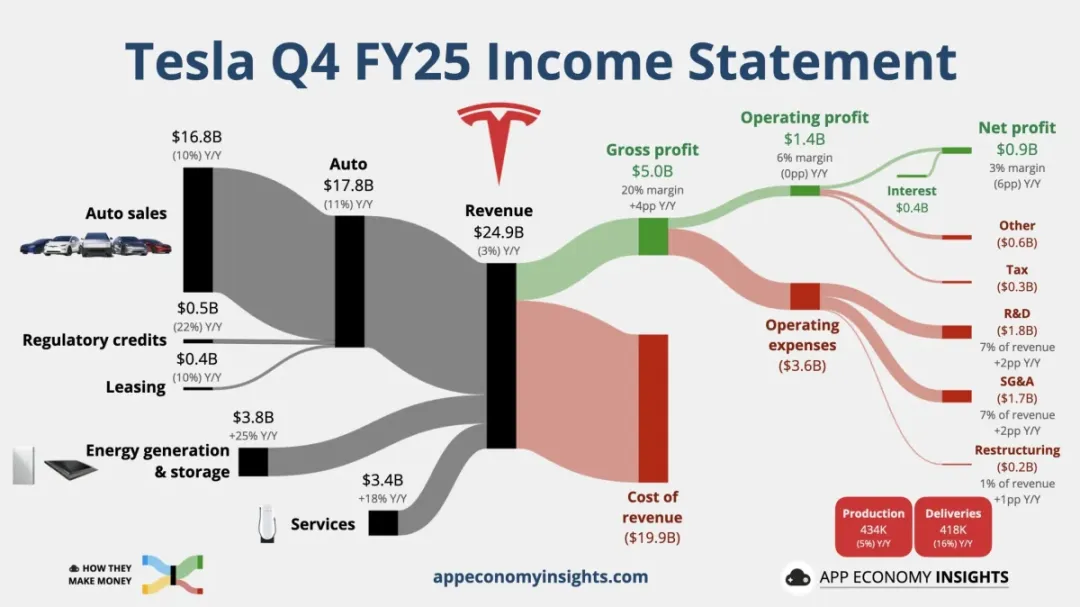 具体来看,特斯拉2025四季报主要财务数据如下: