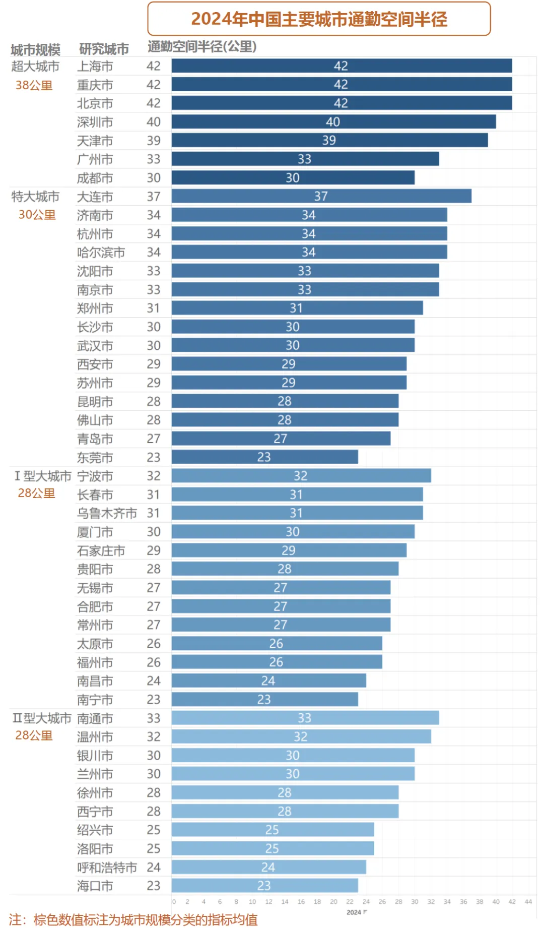 通勤半径持续拓展,北京、上海、重庆同达42公里