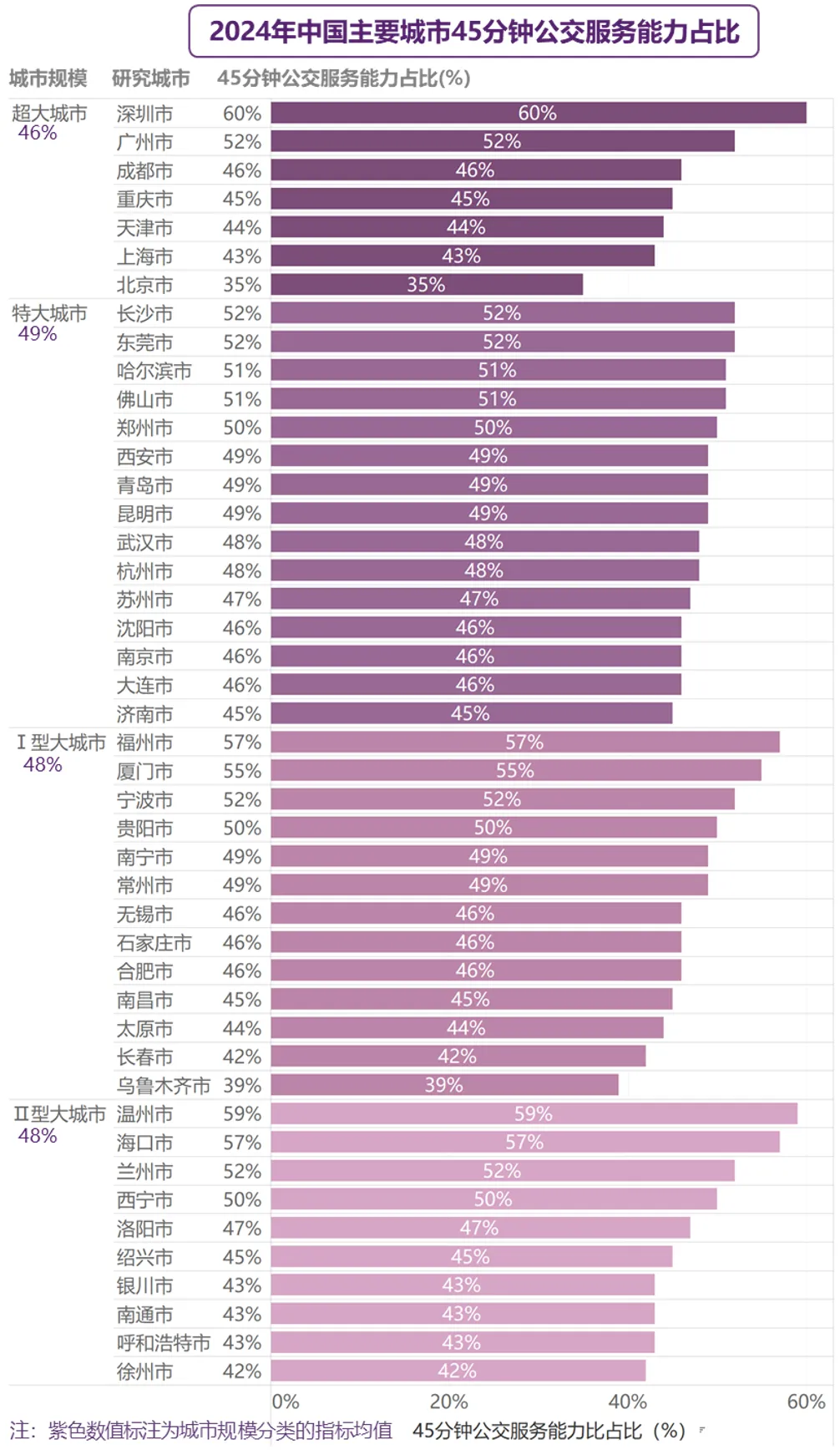 深圳45分钟公交通勤保障能力达到60%,全国最高,近5年提升3个百分点。