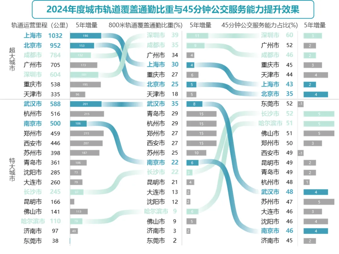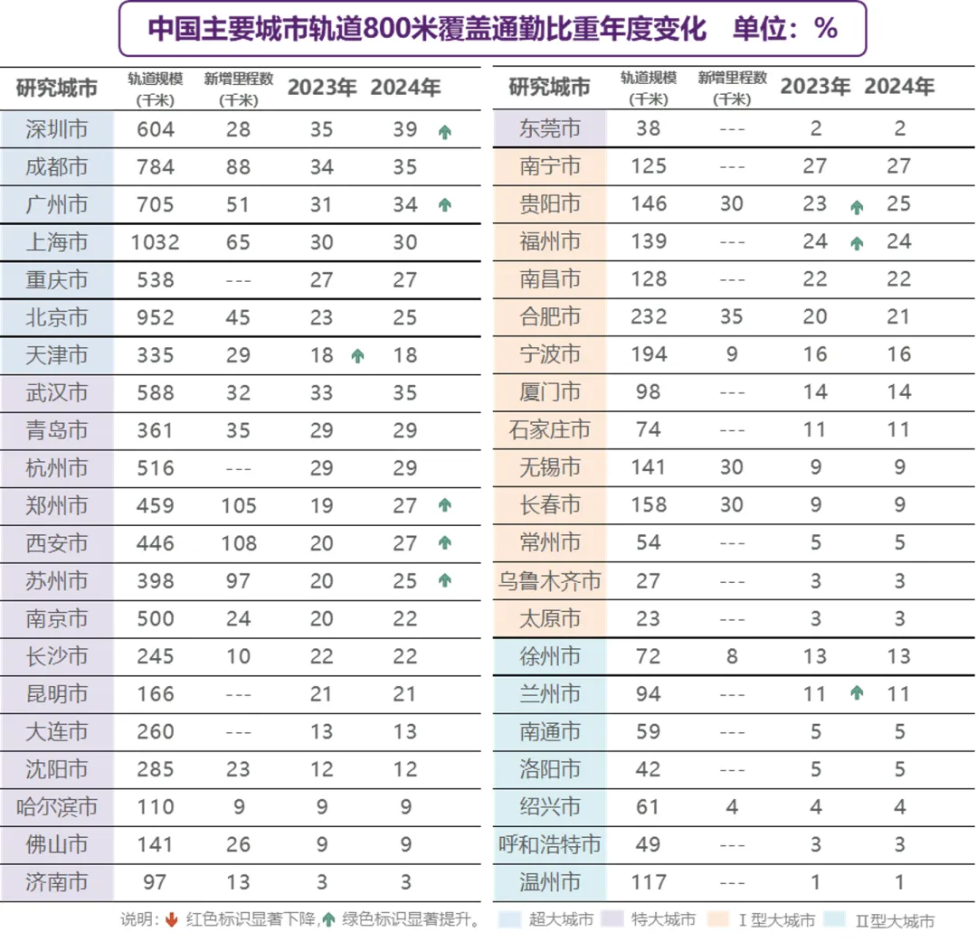 年度新增轨道里程8%,车站800米覆盖通勤比重仅提升1%
