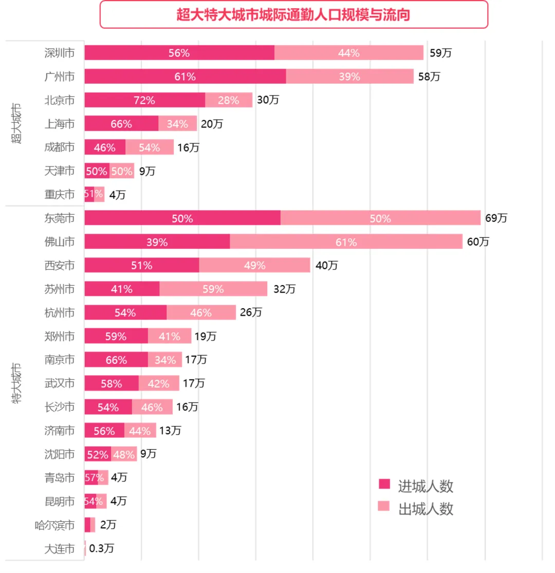 超大特大城市近400万人城际通勤,粤港澳大湾区独占1/4
