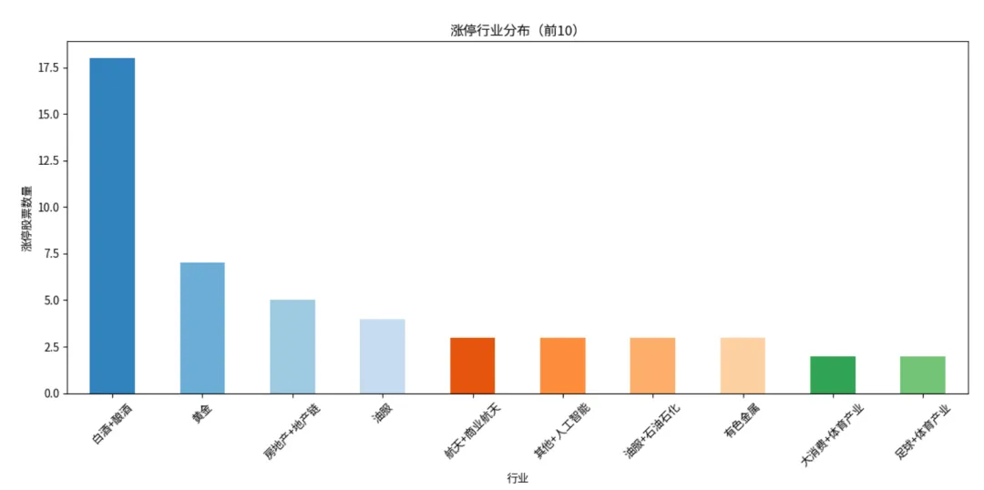 白酒+酿酒板块虽然涨停个股数量最多,但连板延续性相对较弱,适合短线波段操作