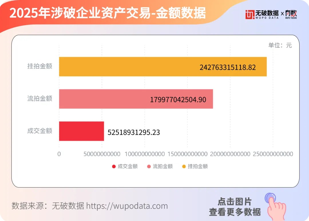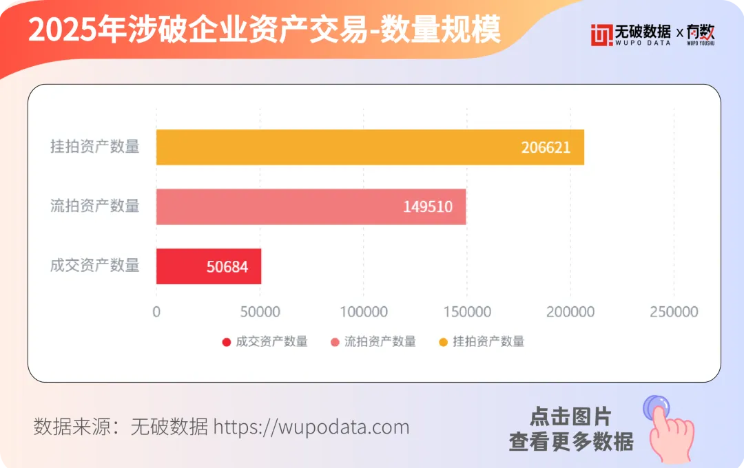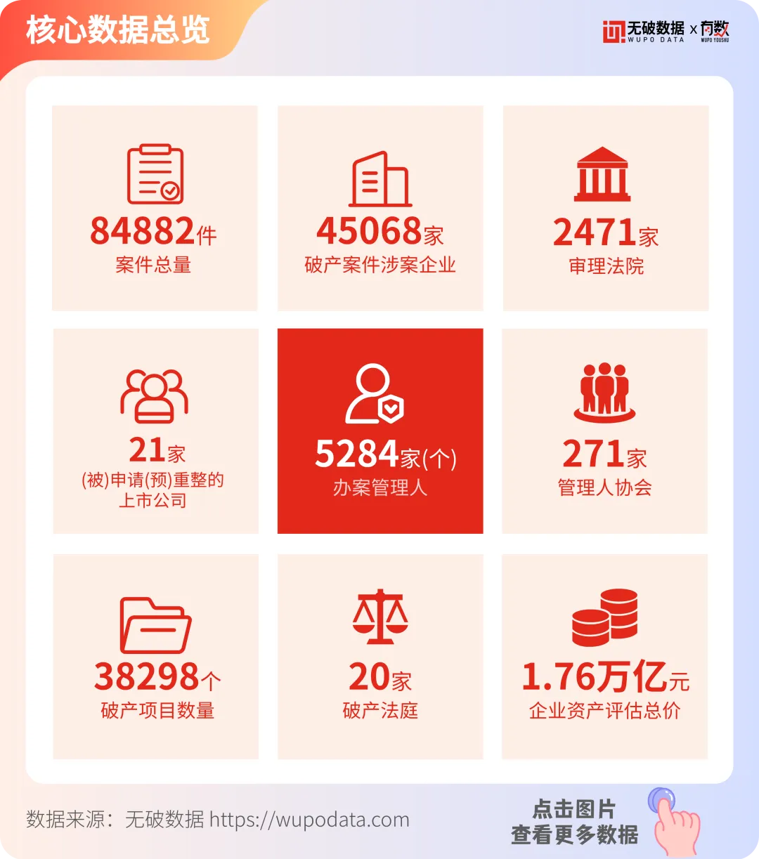 据无破数据统计显示,2025年度,全年全国新增破产及相关案件84,882件,涉案企业45,068家,涉破企业资产评估总价约达1.76万亿元,参与审案的审理法院2,471家。