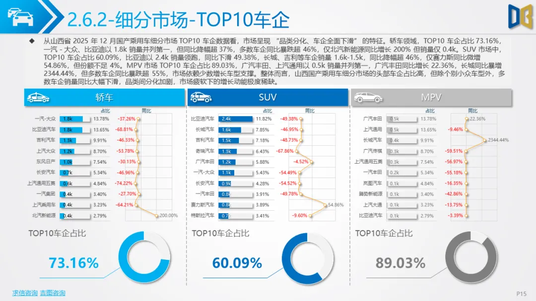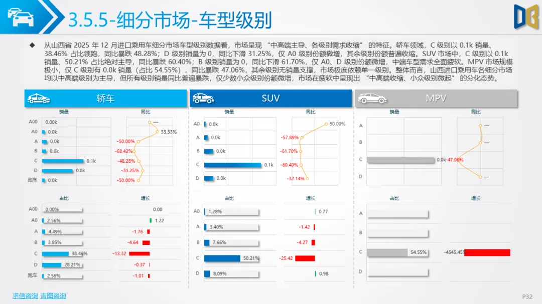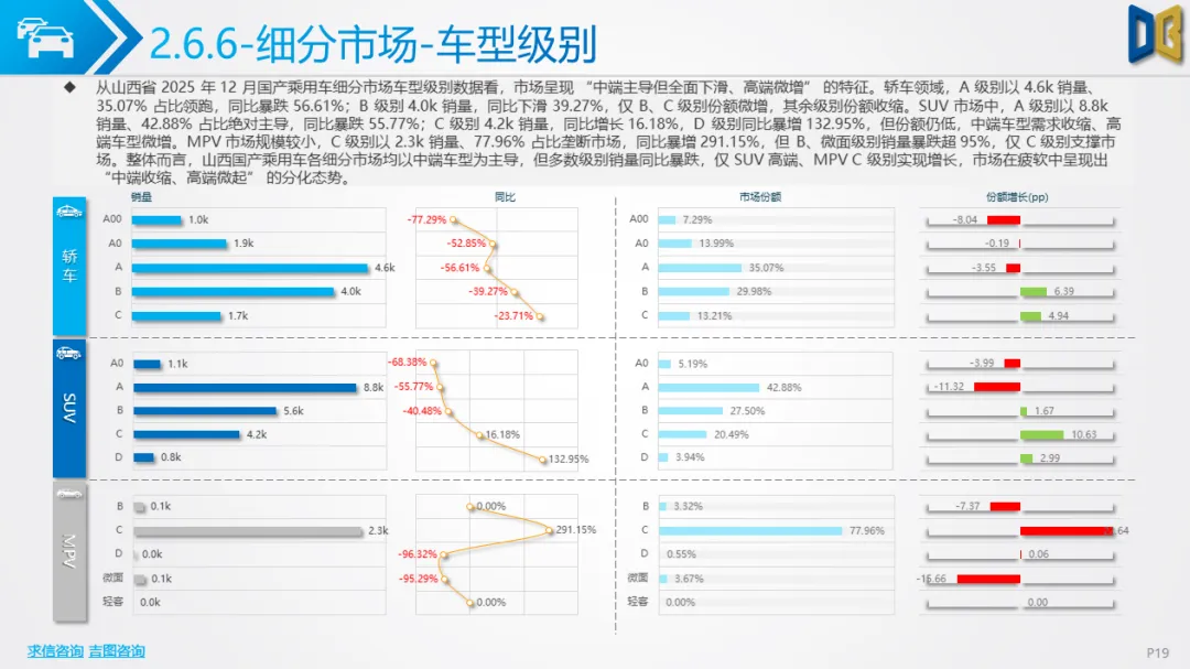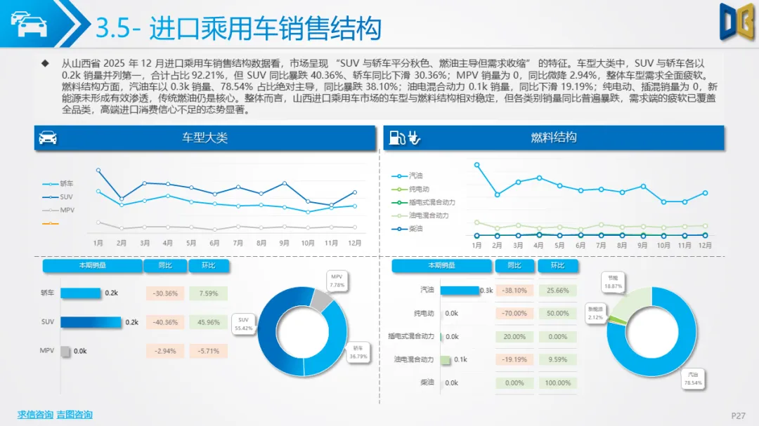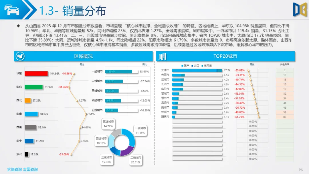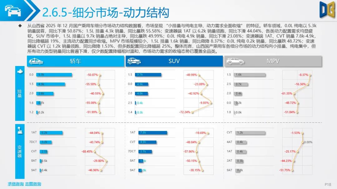 综上,2025年12月山西省汽车市场是 “疲软中的局部回暖”,商用车的新能源转型与刚需支撑暂时对冲了乘用车的全面收缩,但整体市场仍未走出低迷周期,后续需依赖消费刺激政策与产业转型红利,才能实现真正的复苏。