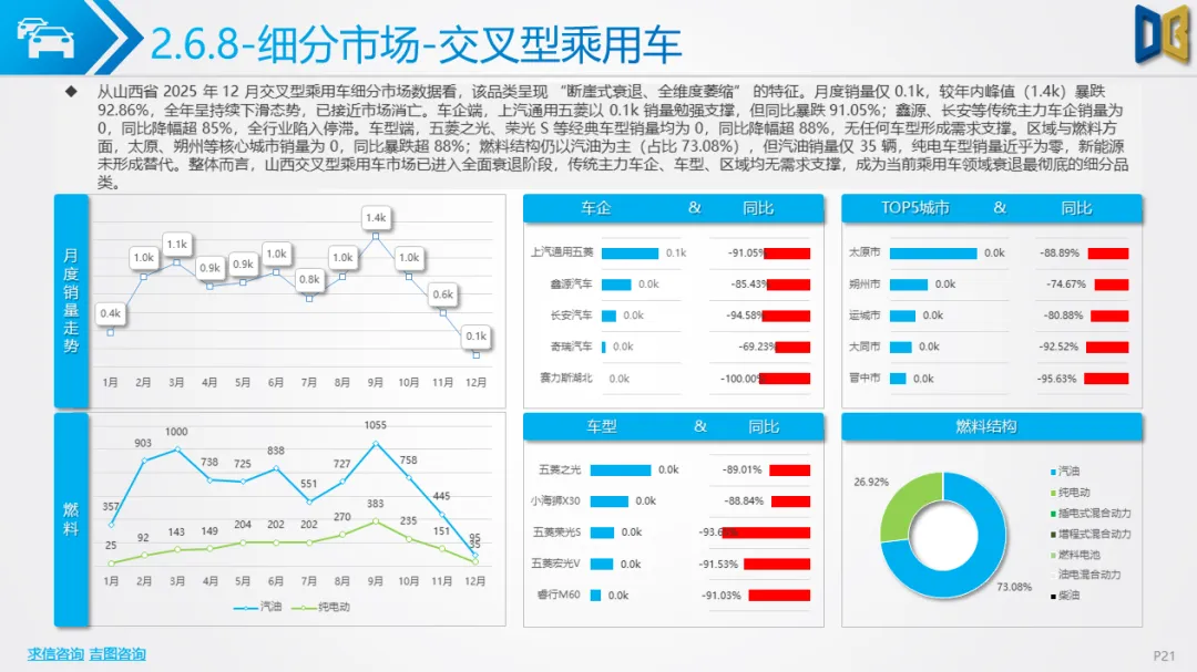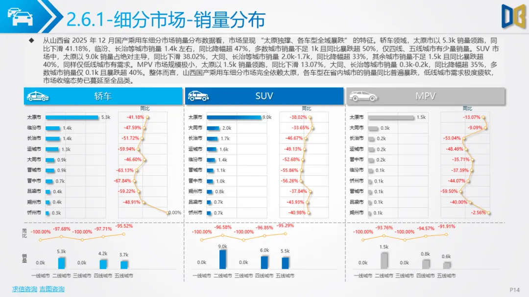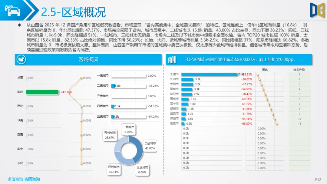 12 月山西省乘用车市场(含进口、国产、交叉型)需求已逼近冰点,核心表现为 “销量低迷、同比暴跌、结构固化”。