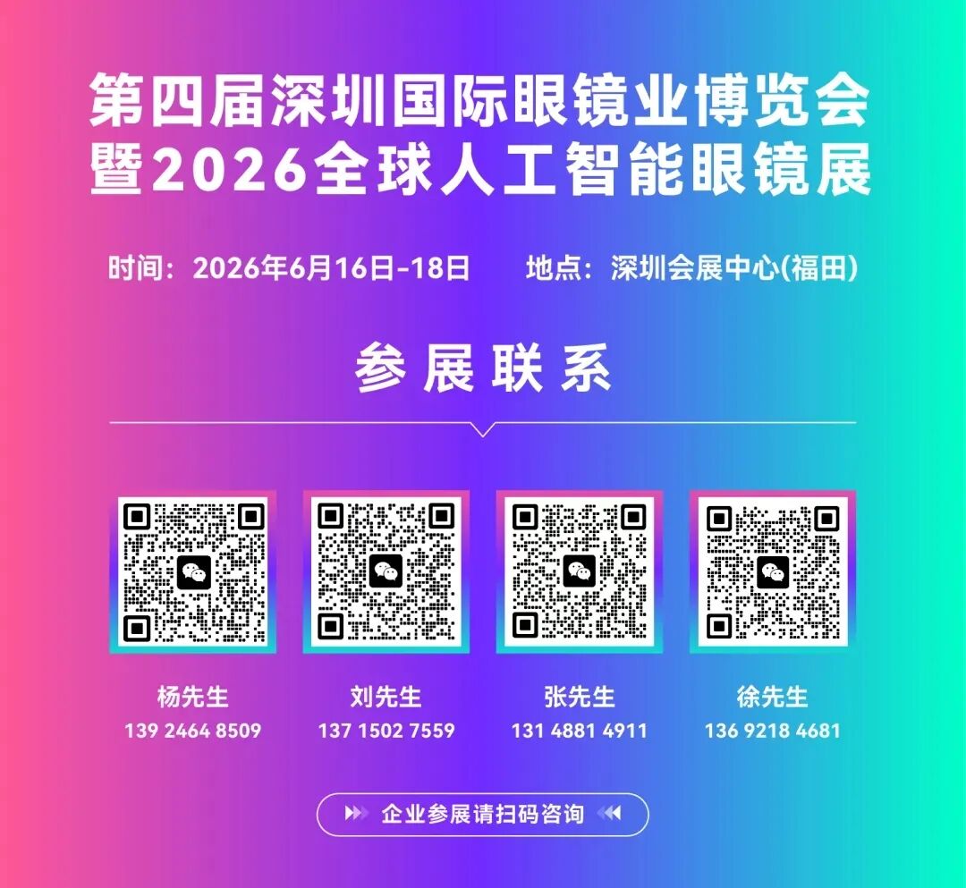 第四届深圳国际眼镜业博览会暨2026全球人工智能眼镜展将于2026年6月16-18日在深圳会展中心(福田)7号馆、9号馆举行。展会以“智镜无界·AI共生”为主题,聚焦眼镜产业发展趋势,积极探索人工智能与眼镜行业的深度融合。