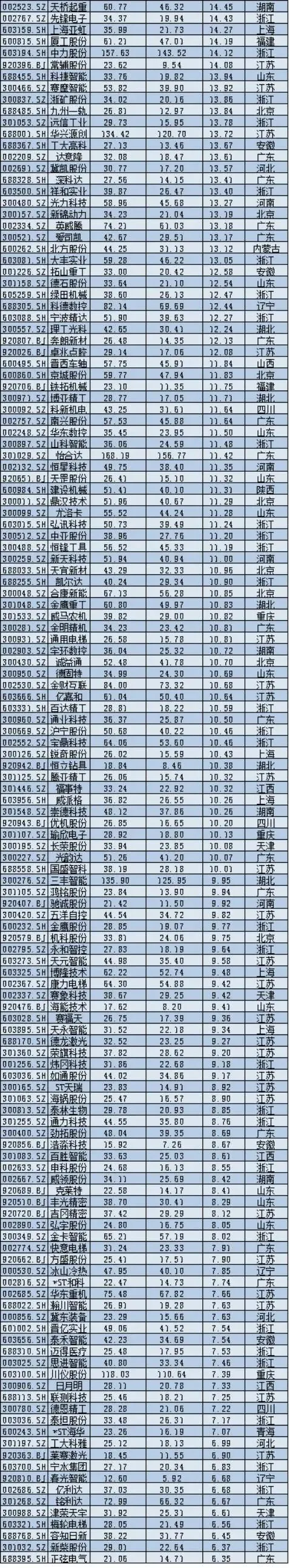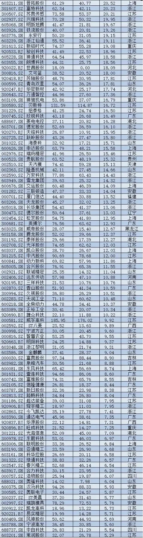 联合动力(301656.SZ)作为新上市公司,市值增长634.83亿元,排名第二,反映出市场对新能源汽车动力系统核心领域的高度关注。