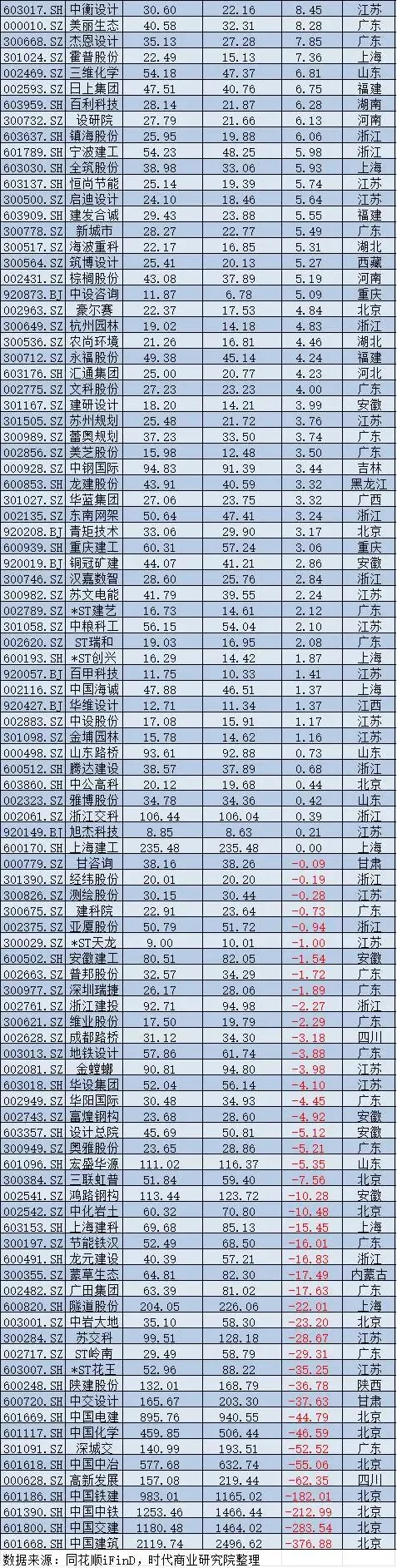 建筑装饰:传统地产业务承压,市值增加最多的是四川路桥,市值减少最多的是中国建筑