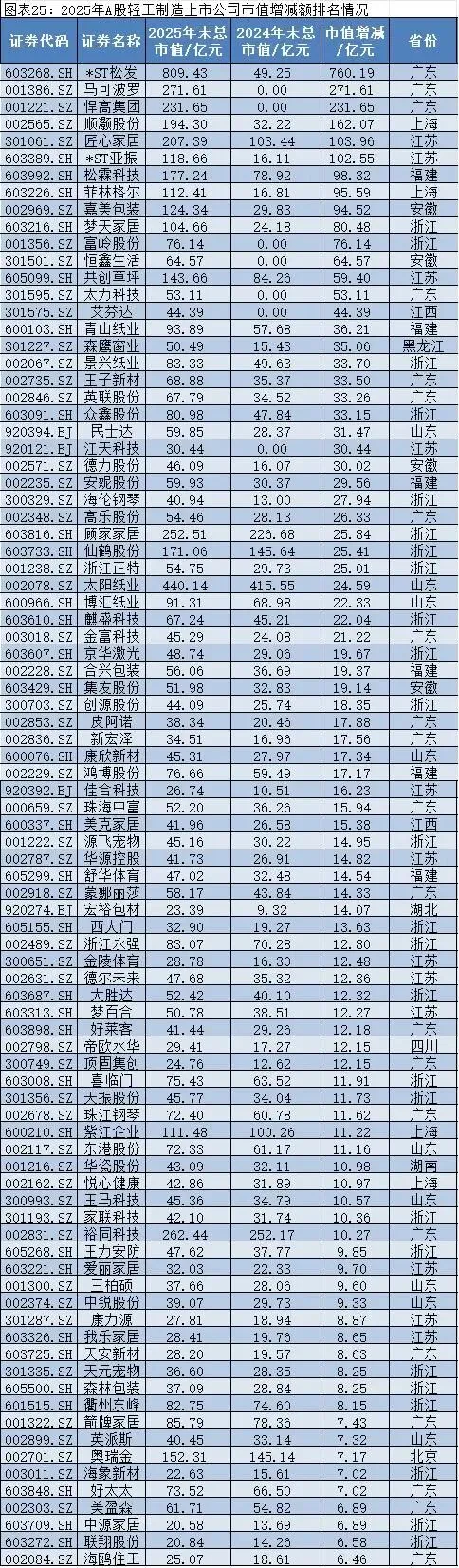 区域分布方面,广东、浙江、江苏等传统轻工制造大省依然是市值增长的主力区域,这些地区凭借成熟的产业基础、完善的渠道网络及灵活的经营机制,培育了一批具备核心竞争力的企业,产业集聚效应持续释放。
