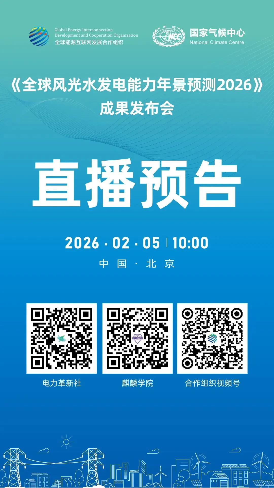 2月5日,全球能源互联网发展合作组织(以下简称“合作组织”)将携手国家气候中心,正式发布《全球风光水发电能力年景预测2026》研究报告。
