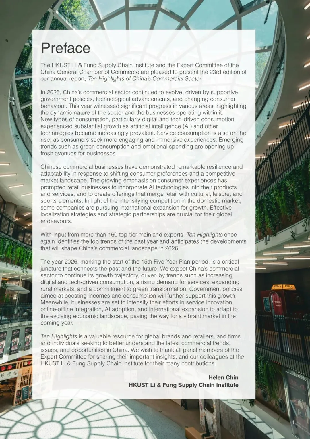 在这一宏大背景下,由香港科技大学利丰供应链研究院联合中国商业联合会专家委员会共同发布的《2026年中国商业十大热点报告》,系统梳理了2025年商业生态的关键演变,更前瞻性地勾勒出未来五年中国商业的核心脉络。
