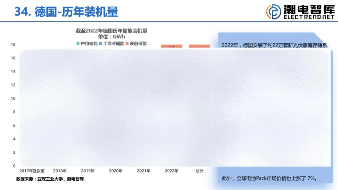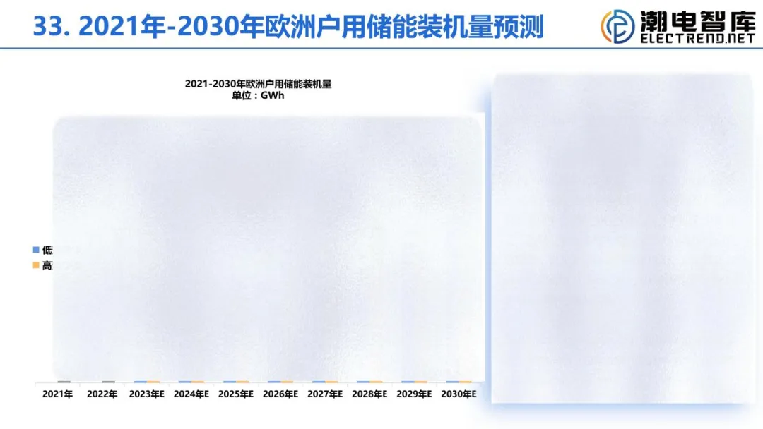 该板块包括2022年欧洲户用储能市场TOP10国家、2021-2030年的装机量预测、欧洲主要户用储能国家、代表企业及产品、储能相关政策和重点法案新电池法等。