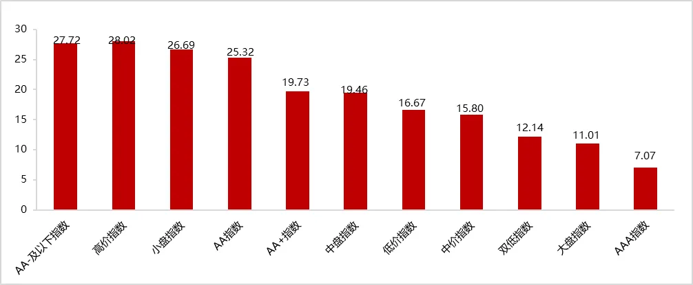 2025年,转债市场在增量资金入场与权益市场带动下表现亮眼,中证转债指数年内累计收涨18.66%,细分指数中万得可转债AA-及以下指数领跑,年内涨幅达27.72%,全年来看,转债市场整体走势大致分为三个阶段: