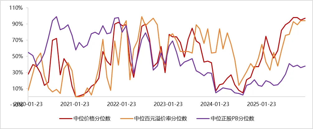 [1] 由于部分公司亏损(净利润为负)会导致PE为负,扭曲历史分位数计算,因此本文使用PB观测正股估值水平。