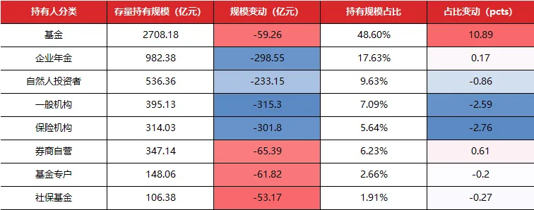 图表12 2025年末转债各持有人持有规模与2025年持有规模变动情况