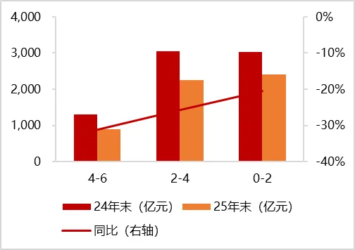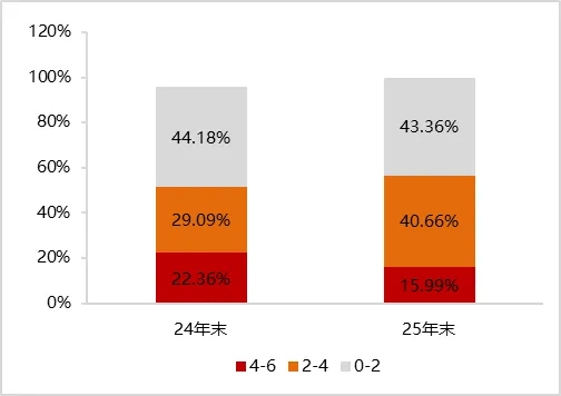 另一方面,2026年老龄转债占比或进一步上升,新券与青年转债配置稀缺性仍存。由于老龄转债退市加快,新券供给节奏缓慢,2025年末新券(剩余期限4年以上)规模占比明显压缩,降至15.99%;青年转债(剩余期限2-4年)占比提升至40.66%,老龄转债(剩余期限不足2年)占比处于43.36%的较高水平,全市场规模加权剩余期限2.55年,比2024年末延长0.11年。展望2026年,新券发行提速有望带动新券供给规模及占比回升,但2026年将有1300多亿元转债陆续转为老龄转债,因此老龄转债占比也会进一步上升,预计将升至50%左右。