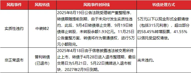 2025年,转债市场信用风险事件明显减少,仅中装转2在发行人破产重整方案受理后,提前到期并发生违约;普利转债由于发行人财务造假跟随正股非正常退市。而鹰19转债虽然面临显著兑付压力,但发行人溢价转股最终实现顺利退出。