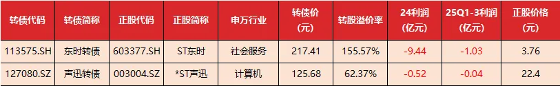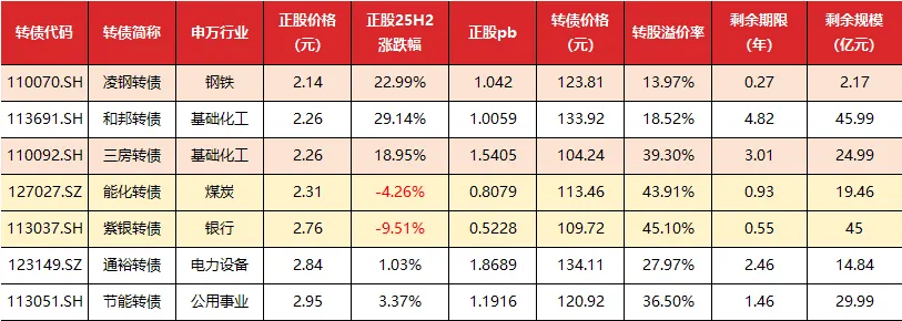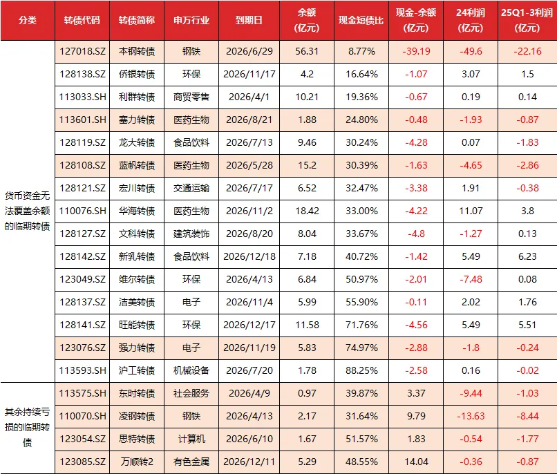 注:连续亏损转债标橙,2025H2正股下行转债标黄