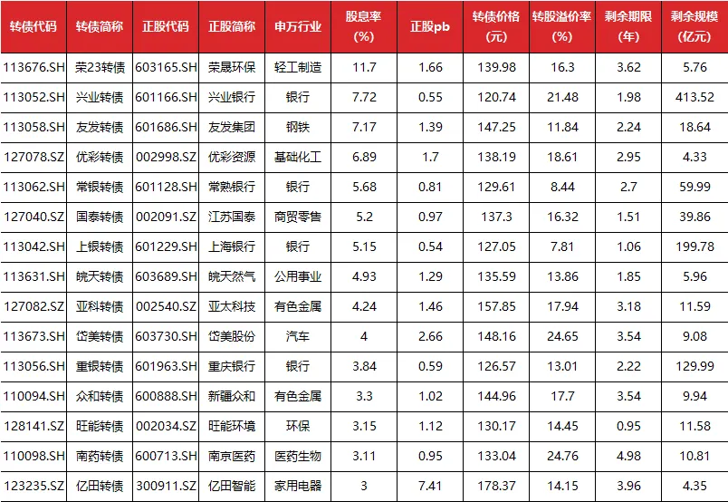 图表21 25年末正股股息率3%以上,剩余期限1年以上,转股溢价率30%以下的转债情况