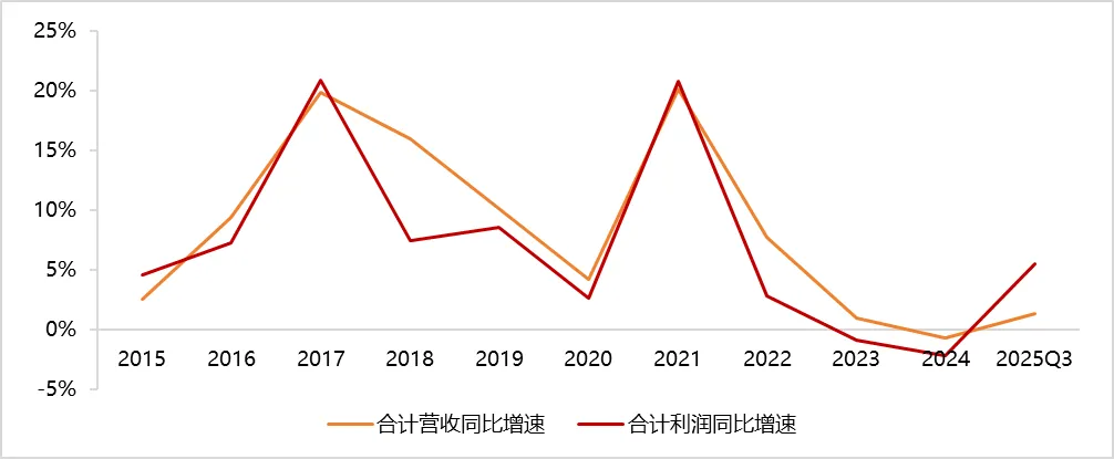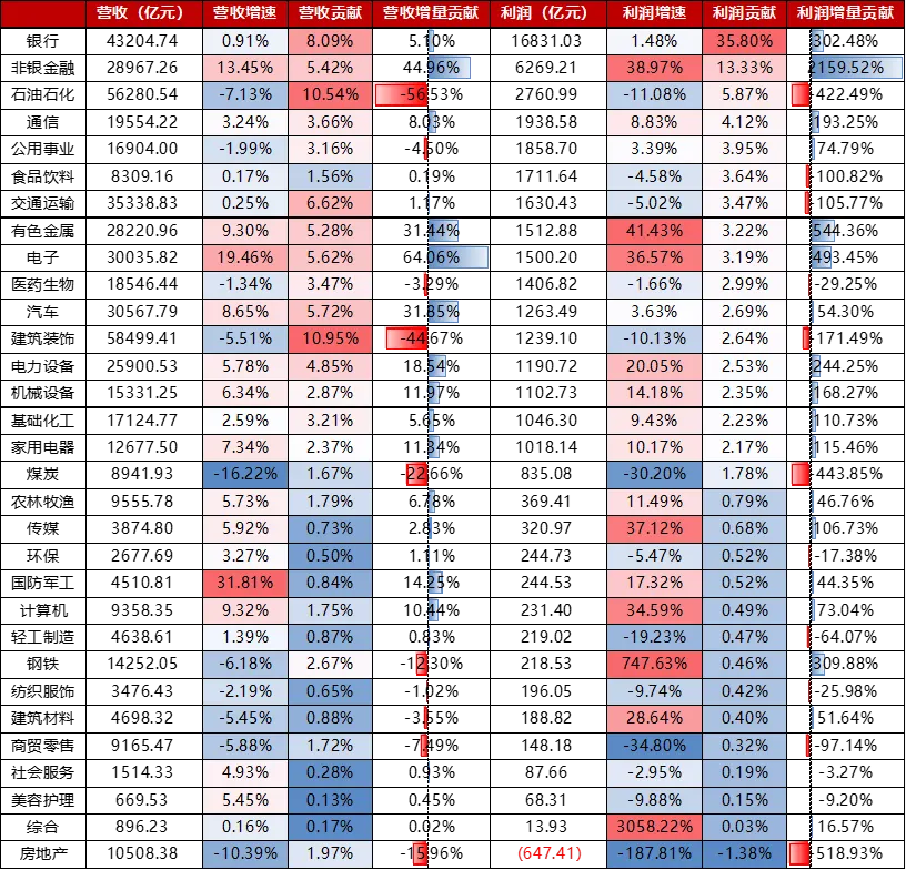 图表25 2025年前三季度各行业合计营收与盈利情况