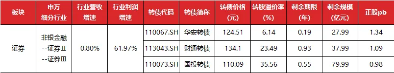 证券行业受益于权益市场成交额放量、一级市场活跃度提升,2025年前三季度营收和利润增速达到17.19%和61.97%,考虑到2026年权益市场将延续交投活跃,IPO进一步松绑,预计证券行业业绩将延续强势,华安转债、财通转债、国投转债有望受益。
