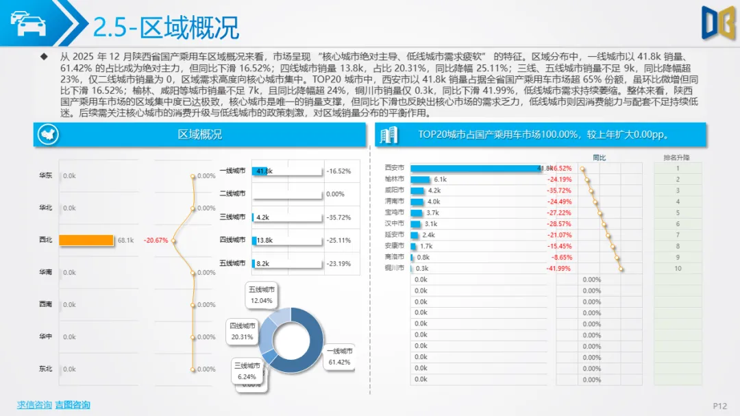 区域集中度极致,西安市占国产乘用车超65%份额,低线城市同比降幅超23%。