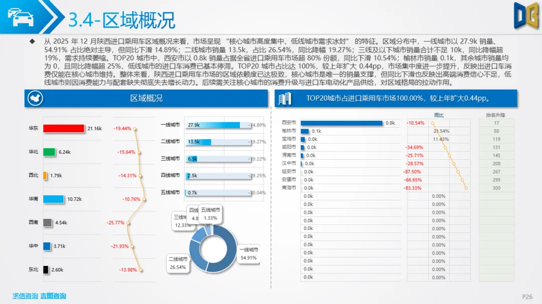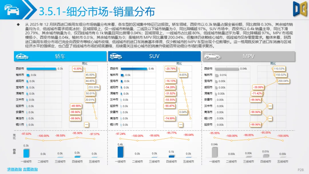 区域依赖度极致,西安市占全省超80%份额,低线城市进口车消费基本停滞。