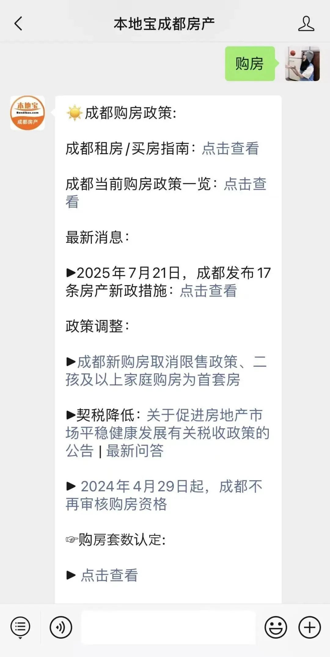 在对话框回复【购房】
