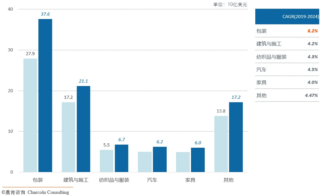 图3 全球塑料再生原料市场按最终用途划分的市场规模及前景