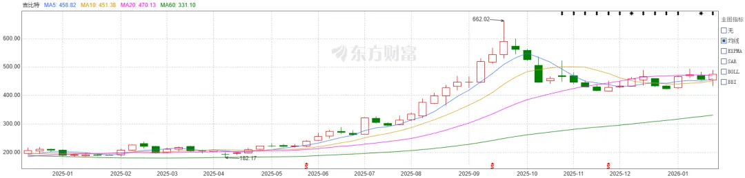东方财富显示,吉比特2025年度股价涨幅达93.68%,年末收盘价423.85元,较上年末收盘价218.84元上涨205.01元,年度最高价达668.00元。