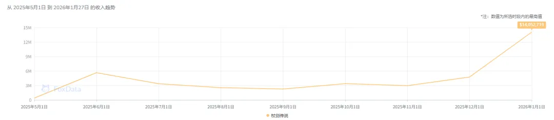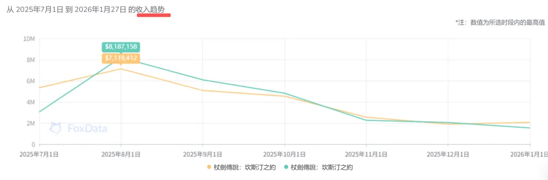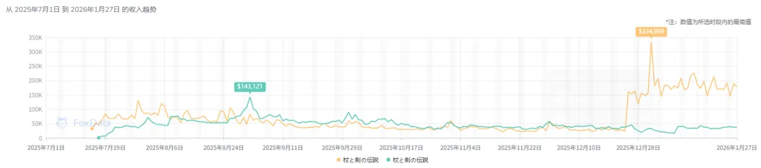 图源:灵狐数据-杖剑传说港澳台新马服收入趋势