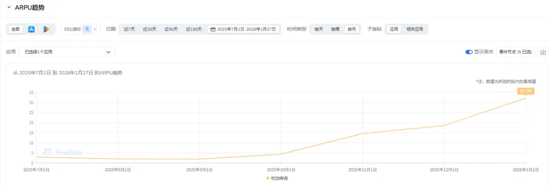 图源:灵狐数据-杖剑传说国服ARPU趋势
