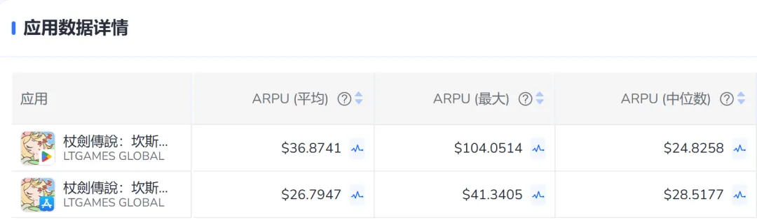 图源:灵狐数据-杖剑传说港澳台新马服ARPU详情