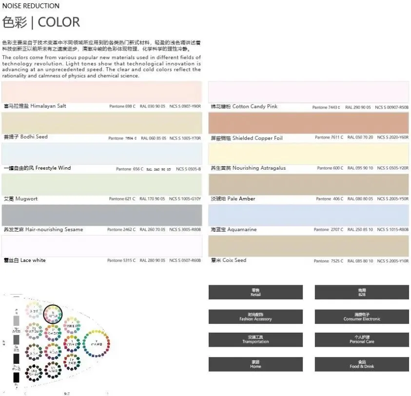 色彩趋势:每个色彩背后都是一个故事,提供Pantone,NCS,RAL色彩编码,每个主题12个趋势色彩,共计48个流行色色盘。