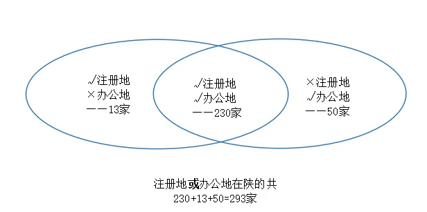 注册地或办公地在陕的共293家。其中:在陕注册办公的230家,在陕注册、非陕办公的13家,在陕办公、非陕注册的50家。