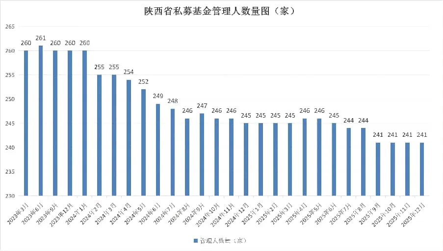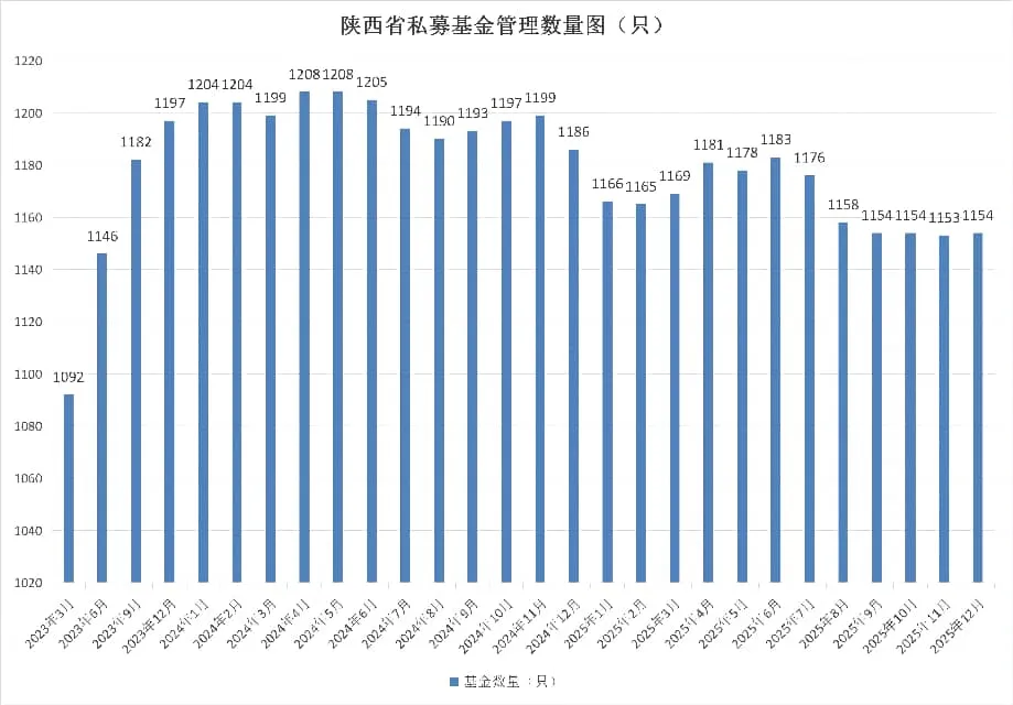 截至2025年12月末,按照注册地口径统计,陕西省私募基金管理机构243家,总管理基金数量1193只,管理基金规模1286.22亿元。