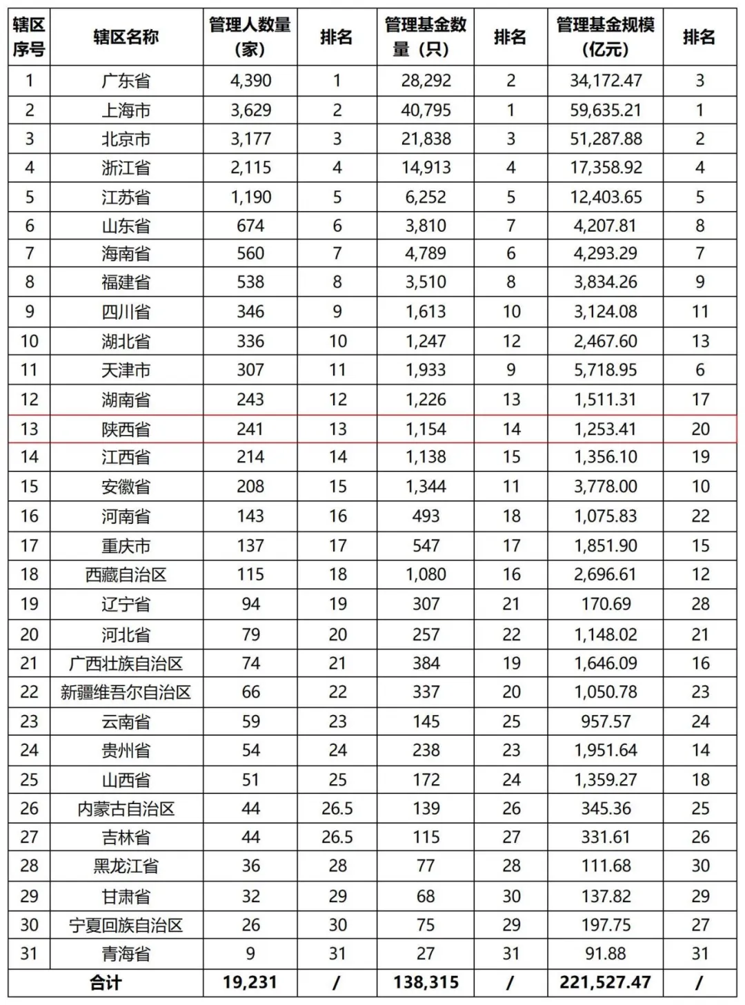 陕西省私募概况