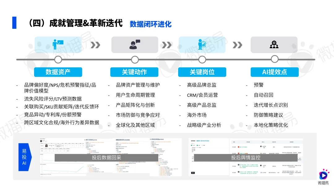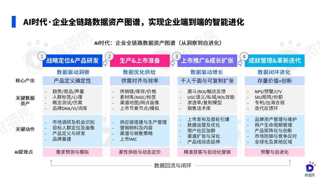 理想的母婴行业数据基建应该实现端到端的智能进化。在战略定位阶段,通过AI分析宏观生育趋势、育儿观念变化、竞品动态等,为产品研发提供数据支持;在生产上市阶段,利用预测数据优化供应链和库存管理;在推广增长阶段,基于用户行为数据实现精准触达和个性化服务;在迭代进化阶段,通过用户反馈数据持续优化产品和服务。