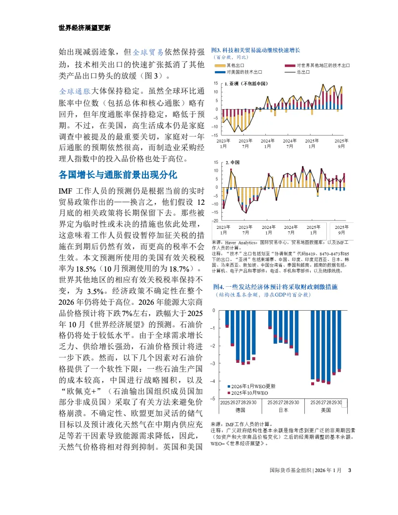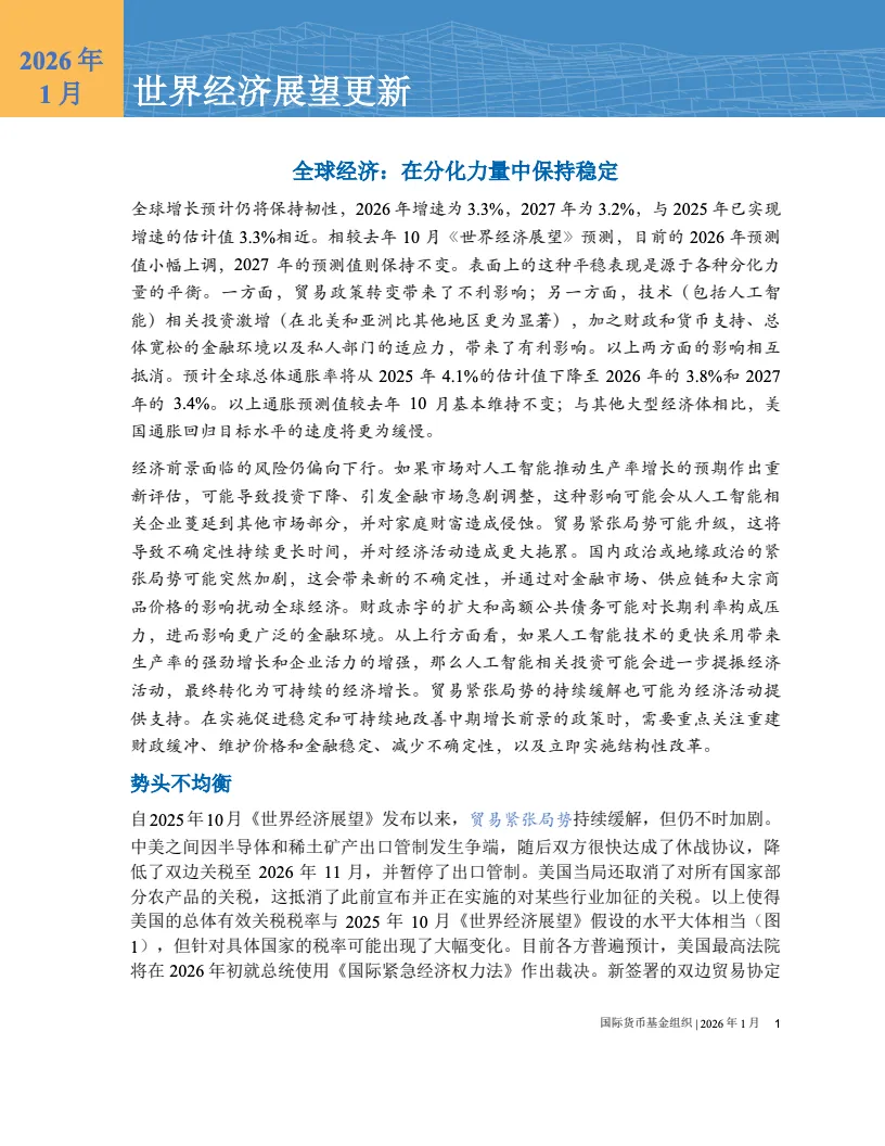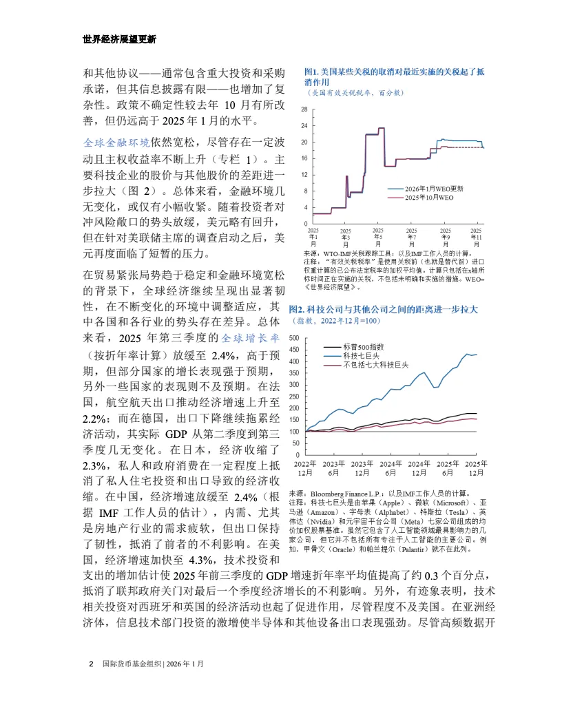 国际货币基金组织最新报告显示,全球经济增速预计达到百分之三点三,较此前预测上调零点二个百分点。尽管贸易环境复杂,但美国与中国的增长动能为全球复苏提供了核心支撑。这表明全球经济在关税冲击与政策波动的压力下,展现出了超预期的适应能力与增长韧性。