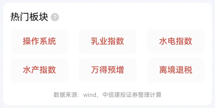 通过北极星账户诊断内嵌模型分析主力资金加仓指标,每日输出热门概念板块,10月28日概念板块热度前六名依次为:操作系统、乳业指数、水电指数、水产指数、万得预增及离境退税,详细概念板块成分股可登录北极星账户诊断查看。