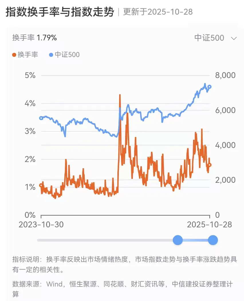 10月28日中证500指数换手率为1.79%,较上一交易日降低0.26个百分点。